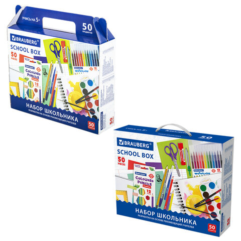 Набор школьных принадлежностей в подарочной коробке BRAUBERG "ШКОЛЬНЫЙ УНИВЕРСАЛЬНЫЙ", 50 предметов, 880123