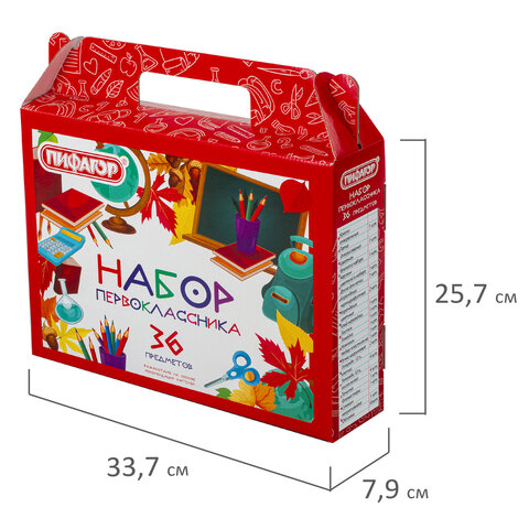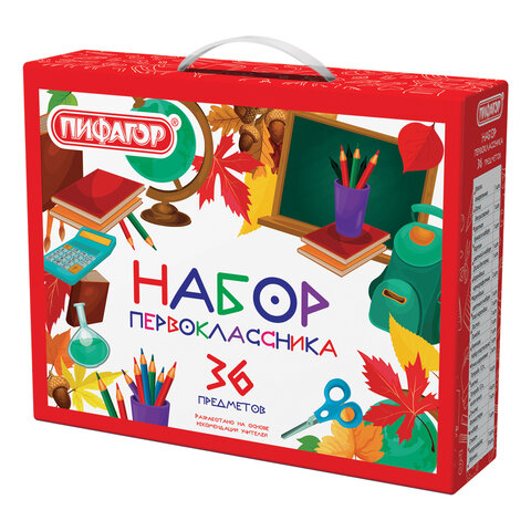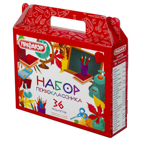 Набор школьных принадлежностей в подарочной коробке ПИФАГОР "НАБОР ПЕРВОКЛАССНИКА", 36 предметов, 880121