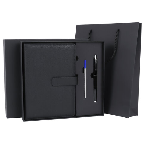 Ежедневник в подарочном наборе 5 в 1, А5, 145x212 мм, BRAUBERG "President", под кожу, 160 листов, черный, 116850