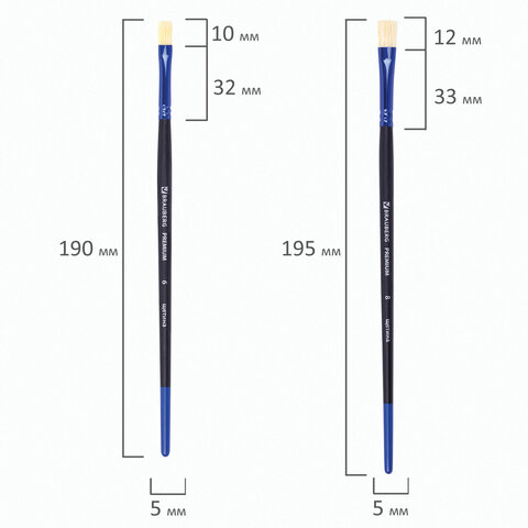 Кисти BRAUBERG PREMIUM, набор 10 шт. (круглые пони - 5 шт., синтетика - 3 шт., плоские щетина - 2 шт.), блистер, 201023