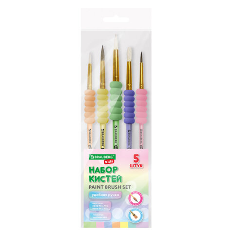 Набор из пяти кистей разного размера c мягкой EVA-вставкой BRAUBERG KIDS позволяет начинающим художникам решать любые творческие задачи в детском саду, школе и дома.