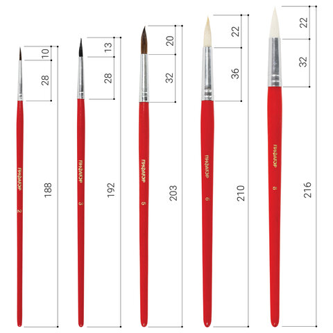 Кисти ПИФАГОР, набор 5 шт. (БЕЛКА: круглая № 3; КОЗА: круглые № 6, 8; ПОНИ: круглые № 2, 5), пакет с европодвесом, 200231