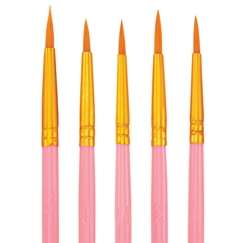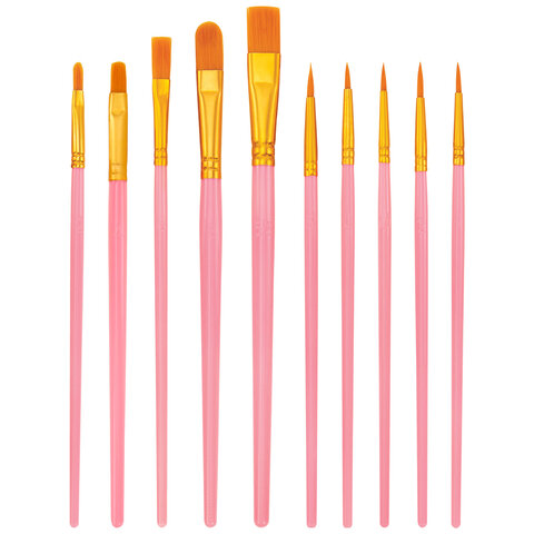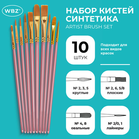 Кисти набор 10 шт., синтетика, розовые, № 2/0-8 (Круглые; Овальные; Плоские; Лайнеры), WBZ (ВБЗ), 201088