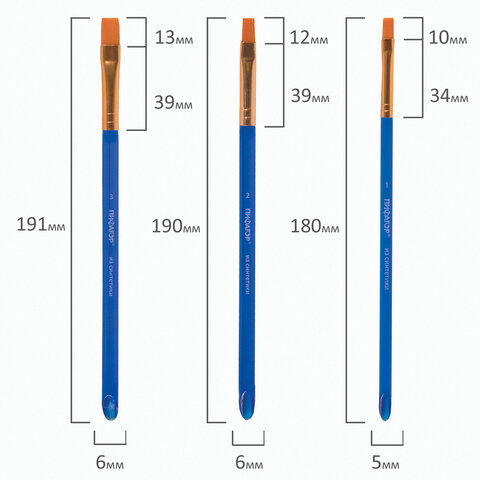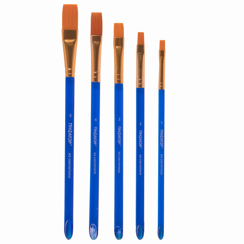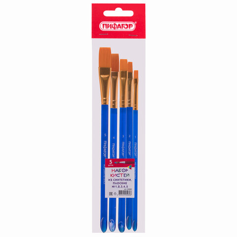 Кисти ПИФАГОР, набор 5 шт. (СИНТЕТИКА: плоские № 1, 2, 3, 4, 5), пакет с европодвесом, 200888