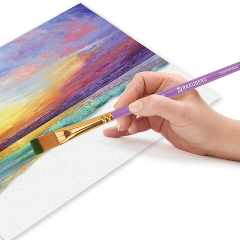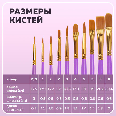 Кисти синтетика BRAUBERG, НАБОР 10 шт., фиолетовые (Круглые; Овальные; Плоские; Лайнеры), 201029