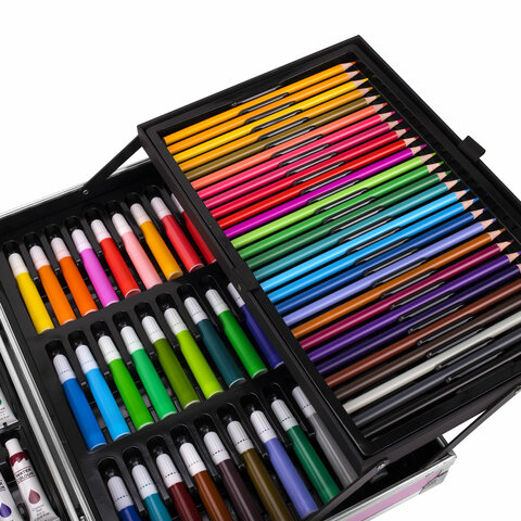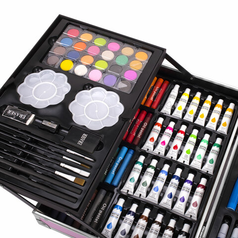 Набор юного художника ЮНЛАНДИЯ отлично подойдет для первых шагов в рисовании. В красочном кейсе есть все самые необходимые предметы для развития творческих способностей ребенка. Набор хорошо развивает усидчивость, воображение, образное мышление.