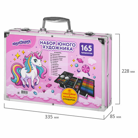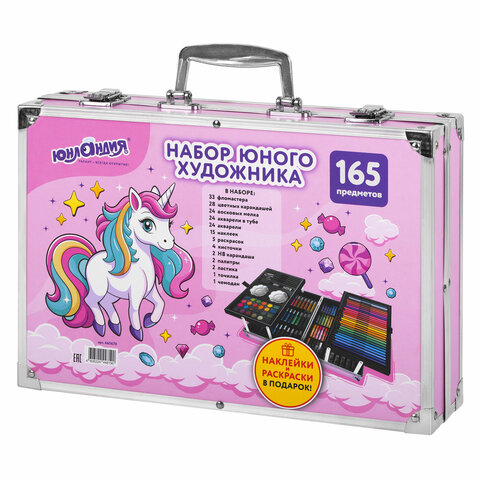 Набор ЮНОГО ХУДОЖНИКА "ЕДИНОРОГ" для рисования и творчества в кейсе ЮНЛАНДИЯ, 165 предметов, 665670