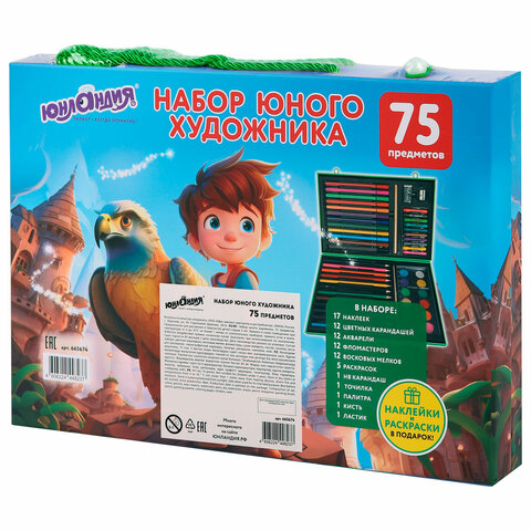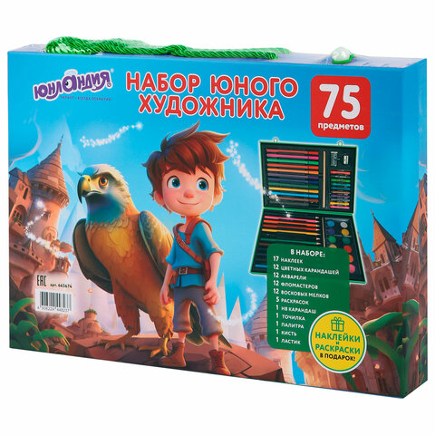 Набор ЮНОГО ХУДОЖНИКА "ОРЕЛ" для рисования и творчества в кейсе ЮНЛАНДИЯ, 75 предметов, 665674