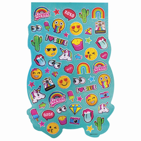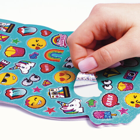 Альбом со сверкающими наклейками "Смайлики", 4 листа, более 250 шт., склейка, ЮНЛАНДИЯ, 662699