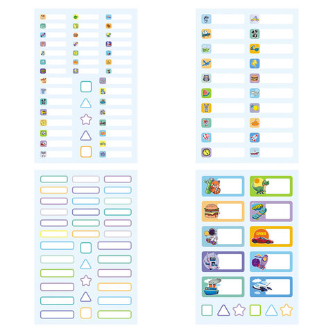Наклейки бумажные для маркировки ПОДПИШУ ВСЕ для мальчиков, НАБОР 4 листа А5, 113 наклеек, HATBER