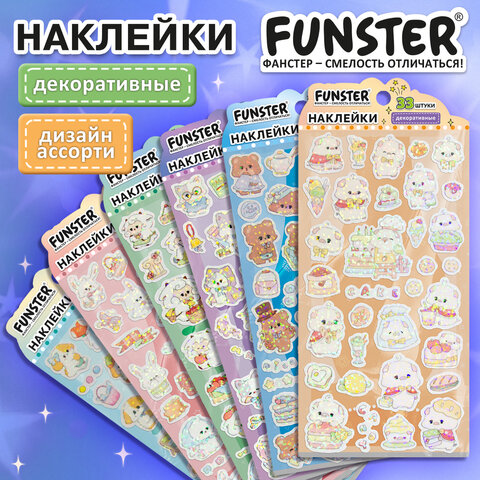 Декоративные наклейки FUNSTER - идеальный выбор для творчества! Эти очаровательные наклейки в ярких дизайнах ассорти поднимут настроение и добавят красок в повседневность.
