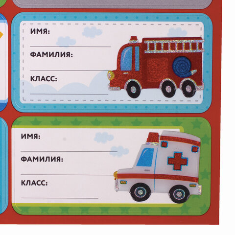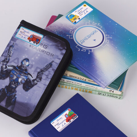 Наклейки для маркировки школьных принадлежностей "Машинки", 12 штук, 14х21 см, ЮНЛАНДИЯ, 662712
