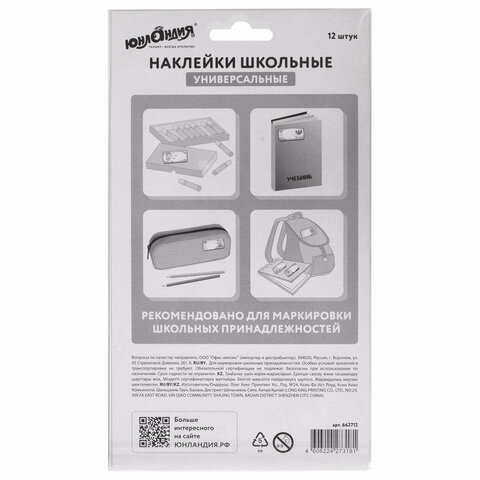 Наклейки для маркировки школьных принадлежностей ЮНЛАНДИЯ созданы для маркировки тетрадей, дневников, учебников, альбомов для рисования и других вещей школьника, а также для их украшения.