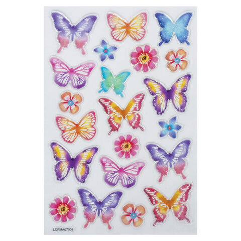 Наклейки гелевые "Пастельные бабочки", многоразовые, с блестками, 10х15 см, ЮНЛАНДИЯ, 661780