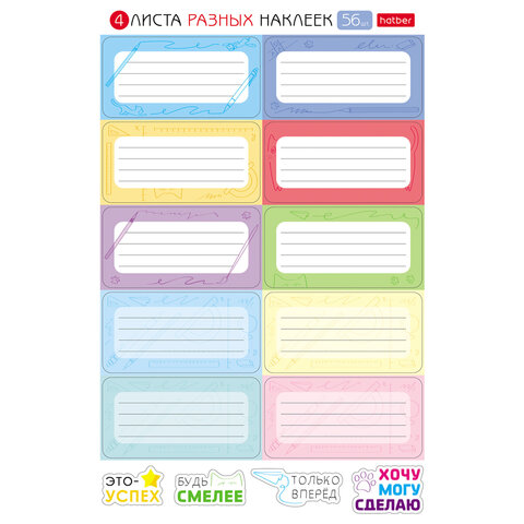 Наклейки бумажные для маркировки КЛАССИКА, НАБОР 4 листа, 56 наклеек, HATBER, 4Н5н