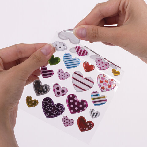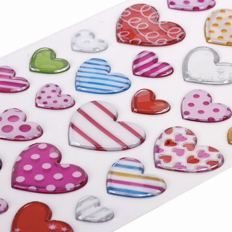 Наклейки объемные "Сердца", многоразовые, 10х15 см, ЮНЛАНДИЯ, 661832