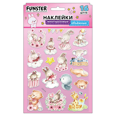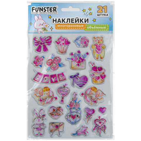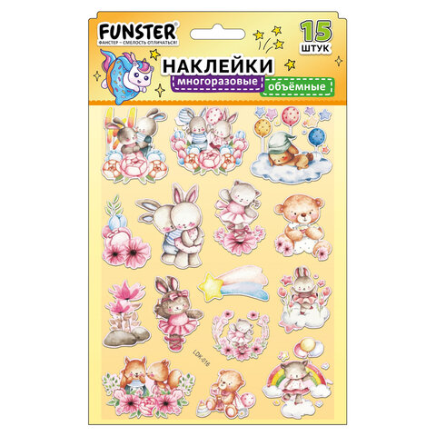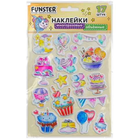 Объёмные наклейки FUNSTER - идеальный выбор для творчества! Эти очаровательные наклейки в ярких дизайнах ассорти поднимут настроение и добавят красок в повседневность.