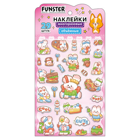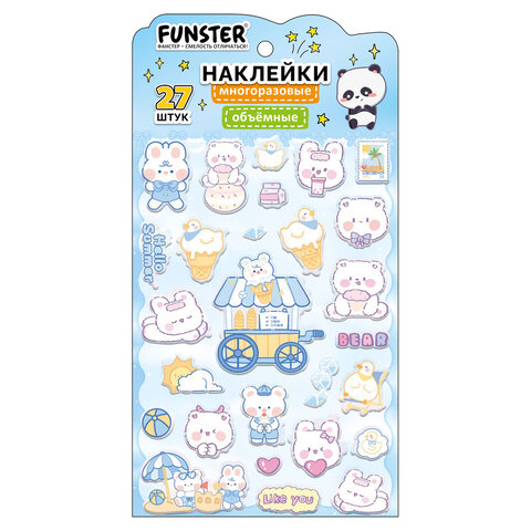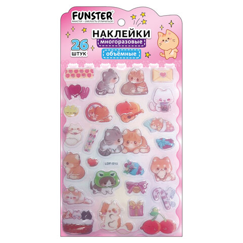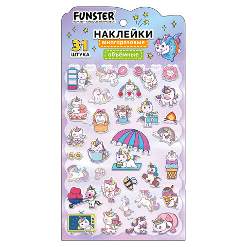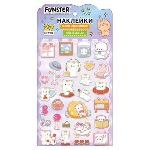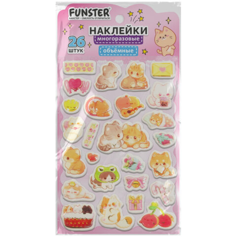 Объёмные наклейки FUNSTER - идеальный выбор для творчества! Эти очаровательные наклейки в ярких дизайнах ассорти поднимут настроение и добавят красок в повседневность.
