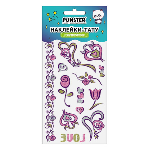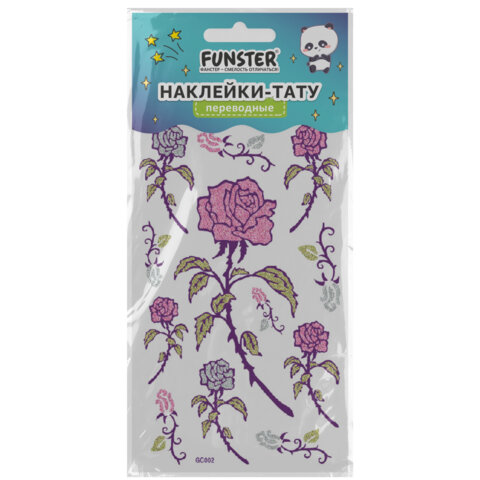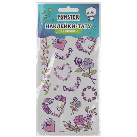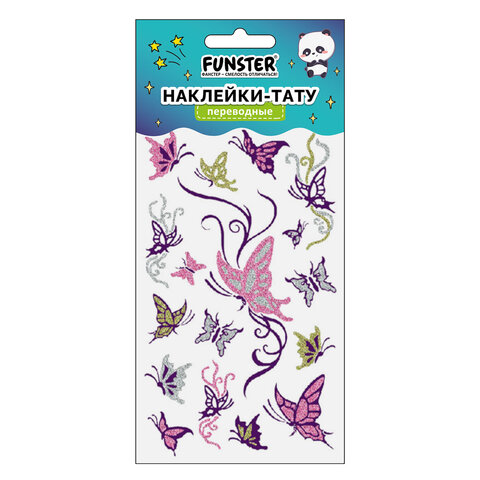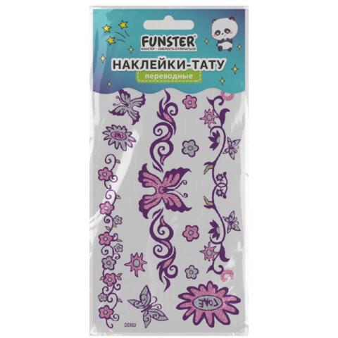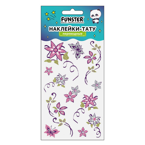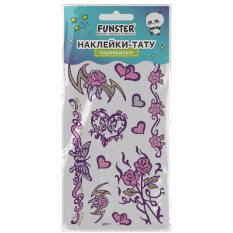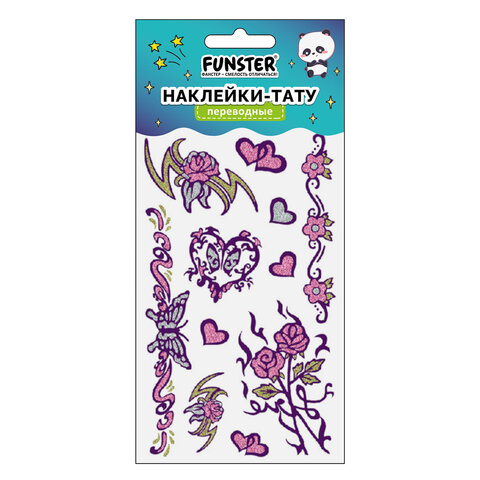 Наклейки-тату переводные "Блестящие", 15,5х9,5 см, ассорти 8 видов, FUNSTER (ФАНСТЕР), 666107