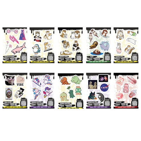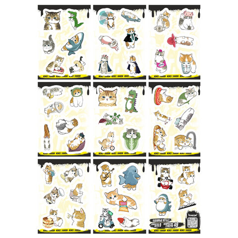 Наклейки виниловые, 49-53 шт., 9 листов, А6, "ЗАБАВНЫЕ ДИЗАЙНЫ", АССОРТИ, NALEPKING
