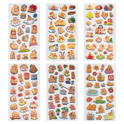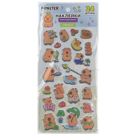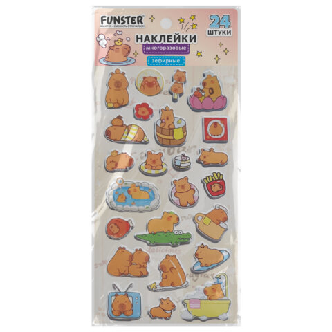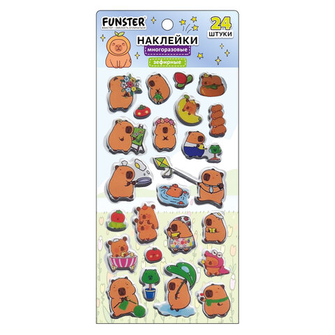 Наклейки зефирные "Капибары", 18х9,5 см, ассорти 6 видов, FUNSTER (ФАНСТЕР), 666093