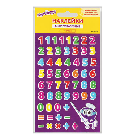 Наклейки зефирные "Цифры", многоразовые, 10х15 см, ЮНЛАНДИЯ, 661796