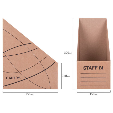 Лоток вертикальный для бумаг (250х320 мм), увеличенная ширина 150 мм, до 1400 листов, микрогофрокартон, STAFF, БУРЫЙ, 126515