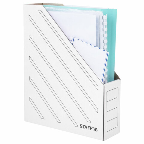 Лоток вертикальный для бумаг (260х320 мм), 75 мм, до 700 листов, микрогофрокартон, STAFF, БЕЛЫЙ, 128881
