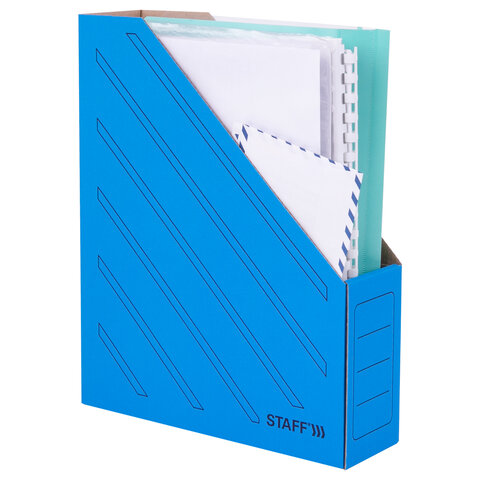 Лоток вертикальный для бумаг (260х320 мм), 75 мм, до 700 листов, микрогофрокартон, STAFF, СИНИЙ, 128882