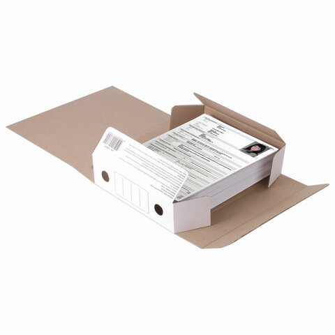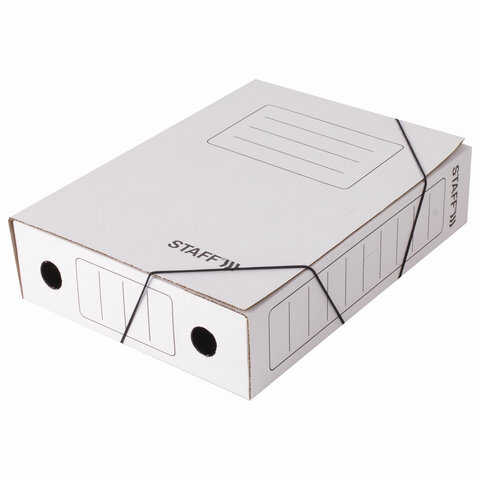 Папка архивная с резинкой А4 (325х250 мм), 75 мм, до 700 листов, микрогофрокартон, БЕЛАЯ, STAFF, 128878