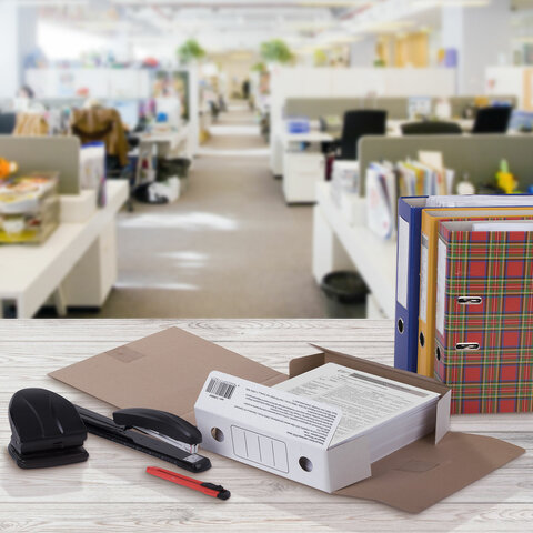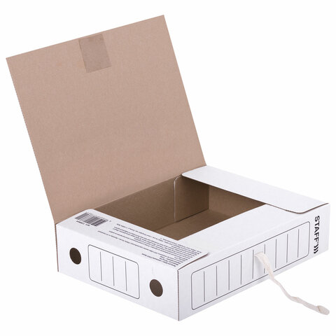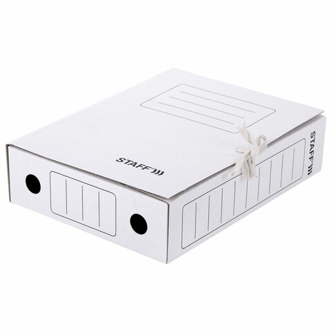 Папка архивная с завязками А4 (325х250 мм), 75 мм, до 700 листов, микрогофрокартон, БЕЛАЯ, STAFF, 128869