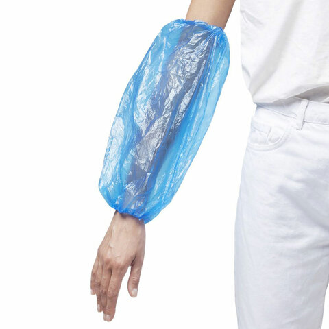 Нарукавники одноразовые КОМПЛЕКТ 100 штук (50 пар) ПЭ, 14 мкм, 3 г, 25х40 см, синие, ELEGREEN