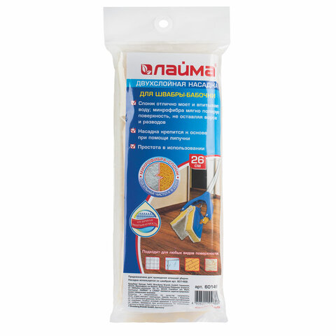 Насадка МОП для швабры самоотжимной "Бабочка" 601468, спонж/микрофибра 26 см, на липучке, LAIMA, 601486