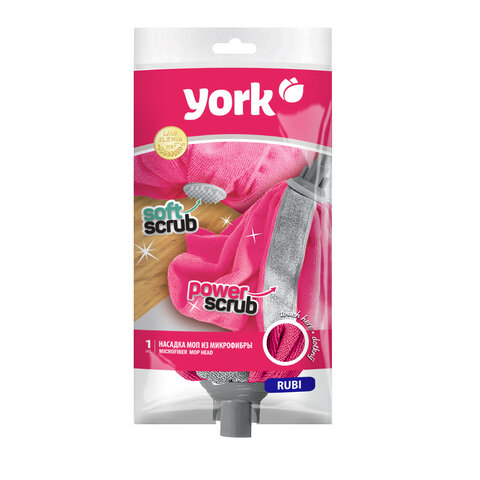 Насадка для мытья полов YORK по типу юбки RUBI подходит к любым рукояткам со стандартной еврорезьбой. Имеет абразивную вставку для удаления загрязнений, резиновую щёточку и прорезиненный анти-вандальный ободок.
