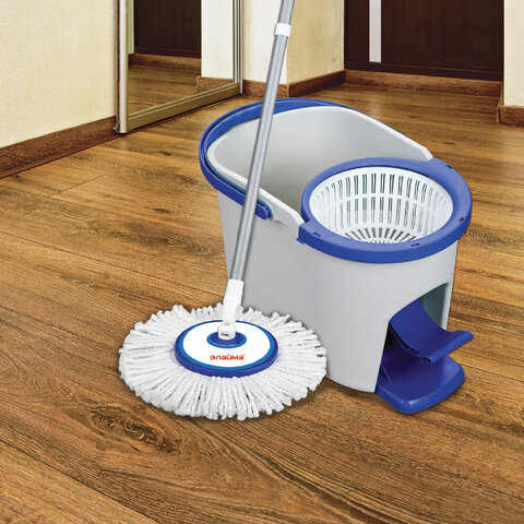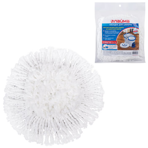 Насадка МОП круглая для швабры из набора для уборки 601459, крепление липучка, микрофибра, d - 16 см, LAIMA, 601487