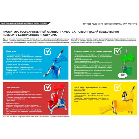 МОПы профессиональной серии LAIMA EXPERT предназначены для влажной и сухой уборки любых твердых поверхностей, таких, как ламинат, плитка, паркет. МОПы имеют стики 4-цветовой кодировки по HACCP для исключения перекрестного загрязнения помещений.