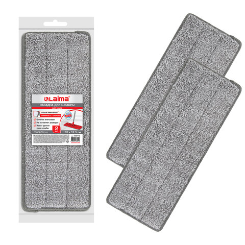 Насадки МОП для швабры (кармашки с 1-й стороны) КОМПЛЕКТ 2 шт., микрофибра, 33х12,5 см, LAIMA, 608143