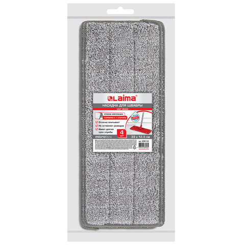 Насадки МОП для швабры (кармашки с 1-й стороны) КОМПЛЕКТ 4 шт., микрофибра, 33х12,5 см, LAIMA, 608145
