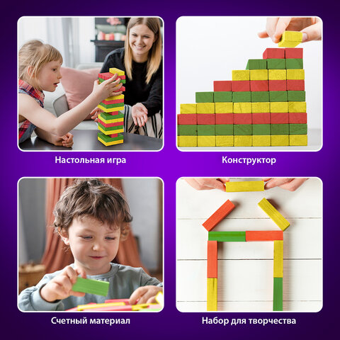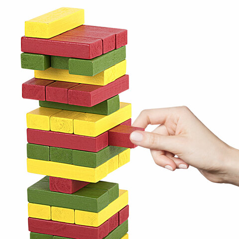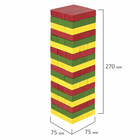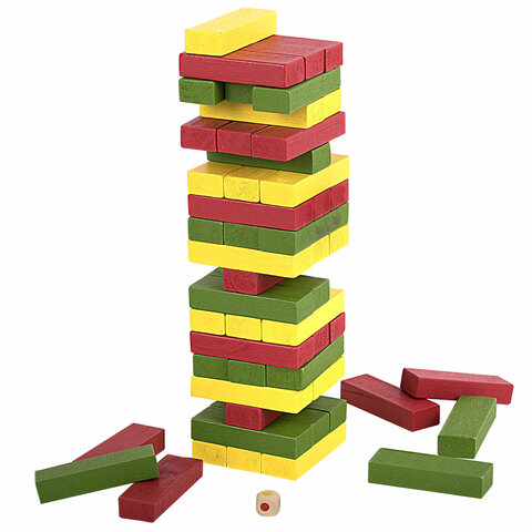 Игра настольная "ЦВЕТНАЯ БАШНЯ", 54 окрашенных деревянных блока + кубик, BRAUBERG HOBBY, 665493