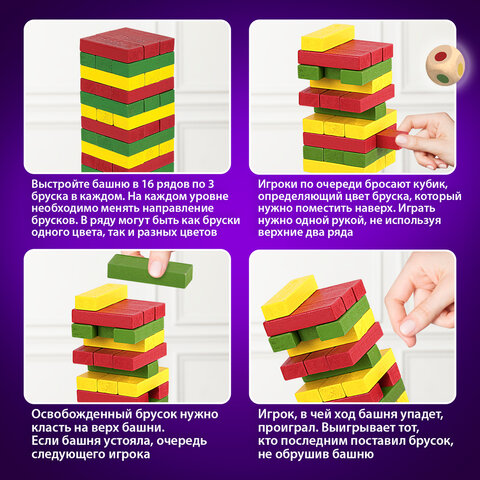 Настольная игра BRAUBERG HOBBY "Цветная башня" – хороший способ весело и интересно провести время в кругу семьи или друзей. Подходит как для семейных вечеров, так и для больших и шумных компаний.
