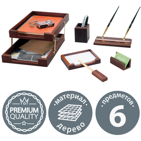 Набор подарочный настольный BESTAR "Apollon" из дерева, 7 предметов, цвет "орех", 236352