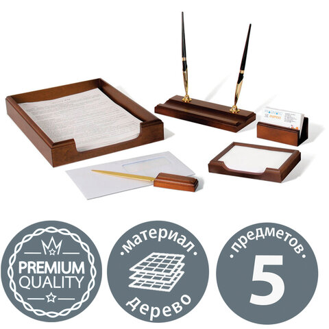 Набор подарочный настольный BESTAR "Neptun" из дерева, 5 предметов, цвет "орех", 236371
