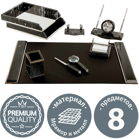 Набор настольный GALANT из мрамора, 8 предметов, черный мрамор/серебристые металлические детали, 231192