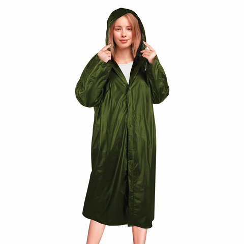 Дождевик-плащ хаки на кнопках виниловый сверхпрочный, размер 50-56, рост 170-185, ГРАНДМАСТЕР, 610937
