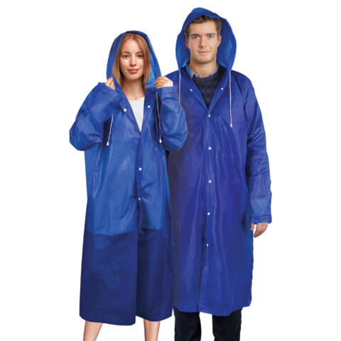 Дождевик плащ на кнопках, EVA, многоразовый прочный, чехол в комплекте, универсальный размер, синий, SHAMAANI (ШАМААНИ), 610931