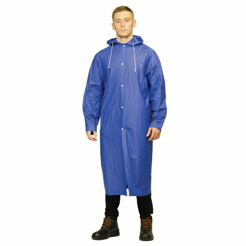 Дождевик-плащ синий на кнопках, EVA, многоразовый, прочный, универсальный размер, Komfi, 23319