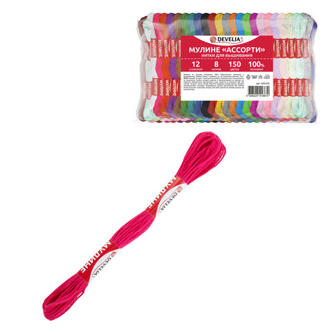Нитки для вышивания (мулине), набор 150 цветов, 8 м, полиэфир, DEVELIA (Девелиа), 665433