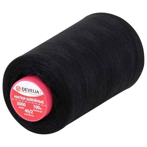 Нитки швейные 40/2 5000 ярд. (4572 м), 1 шт. черные, DEVELIA (Девелиа), 665621