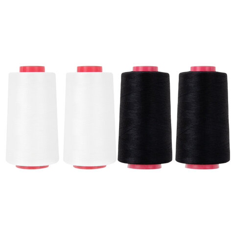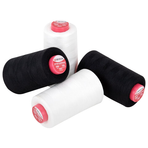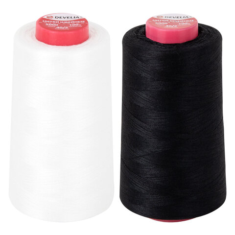 Нитки швейные 40/2 5000 ярд. (4572 м), Набор 2 белых/2 черных, DEVELIA (Девелиа), 665429
