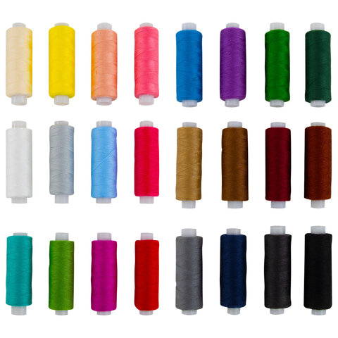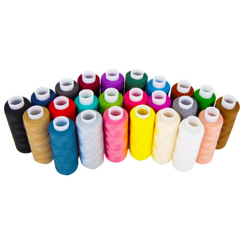 Нитки швейные 40 ЛШ, 200 м, полиэстер, НАБОР 24 цвета, в ПОДАРОК набор игл, DEVELIA (Девелиа), 609625
